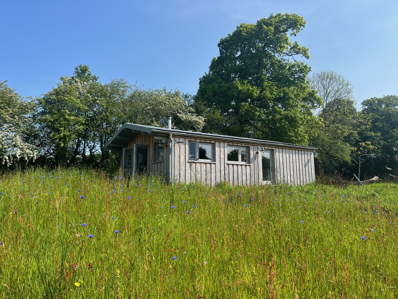 The cabin’s design features two sets of double Flush French Doors, inviting an abundance of natural light and seamlessly connecting the indoor and outdoor spaces. Additionally, two large Flush Casement Windows, complete with a side hung opener alongside longer fixed sash, provide the perfect mix of practicality and style.